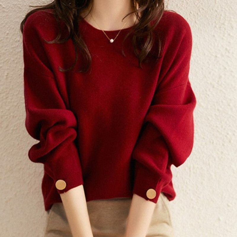 라운드 롱 소매 캐주얼 루즈한 니트 스웨터